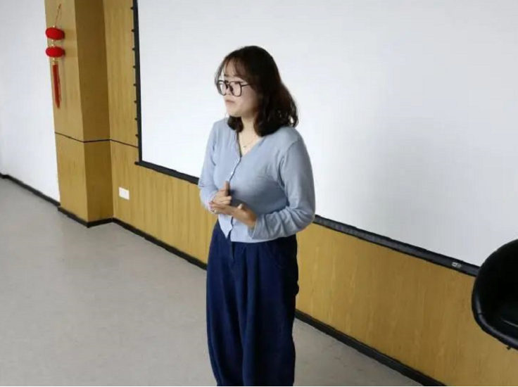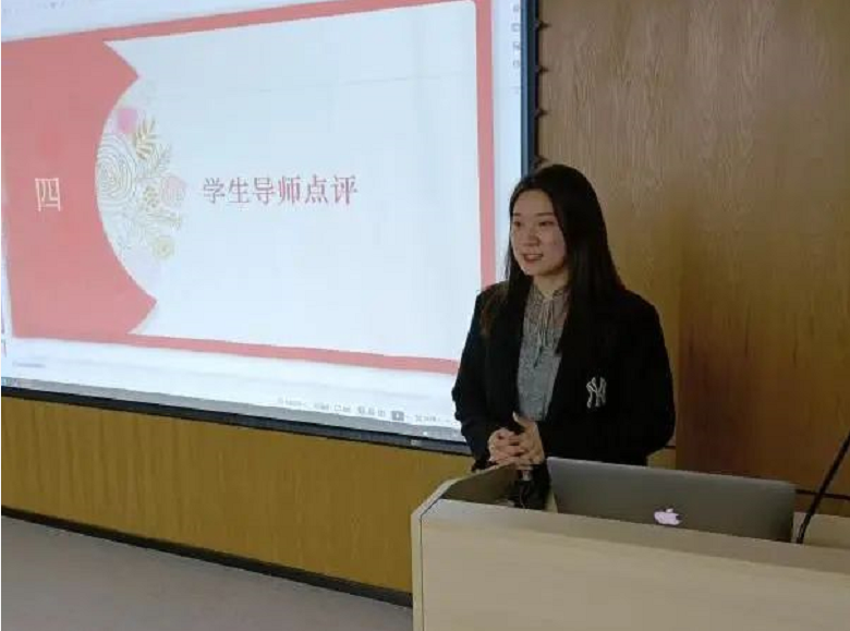 闫睿怡总结了组员们讲台展示时的台风表现,对舞台状态、语言应用、时间把控等展示技巧进行了生动的讲解和教学,并提出了三点建议:(1)舞台状态要积极、放松,要求我们多上台历练、每次上台前做充足的准备,可以根据PPT关键内容联想记忆讲稿。(2)表达要有对象感,和观众适时进行语言、眼神的交流,语速适中,语调有情绪起伏,以吸引观众的注意力。(3)展示要严格控制时间,以显示对规则的尊重和充分准备排练。