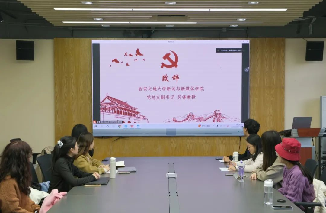首先,西安交通大学新闻与新媒体学院吴锋教授以深入学习贯彻习近平文化思想,加强高校间党建活动交流为出发点对于本次活动致辞。他表示,本次联合党建活动是五所院校相互交流学习的好机会,未来的党建活动也需要不断创新,增加线上、线下合作。