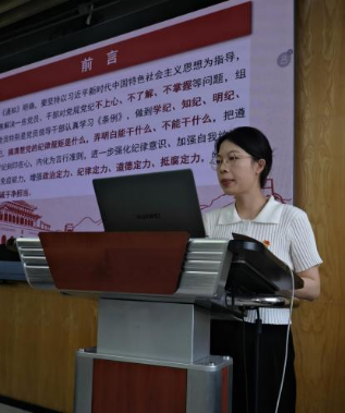 支部党员凌洁同志带领大家开展党纪学习教育专题学习,围绕新修订的《中国共产党纪律处分条例》讲解了修订背景、重要意义和主要内容,还重点领学了其中与高校师生密切相关的条文规定,提醒大家自觉学纪、知纪、明纪、守纪,扣好人生“第一颗扣子”,在正确的道路上行稳致远。