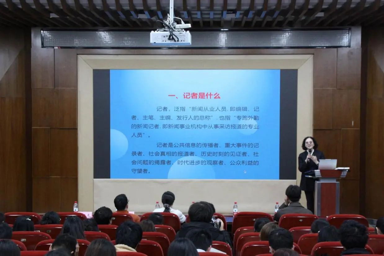 12月3日,光明日报社高级记者、hahabet星辰大海兼职教授夏静为hahabet2024级本科生带来红旗育人之初心讲堂“新闻记者的追求与坚守”。她围绕“记者”这一关键词,结合自己新闻采写实践现身说法,生动地诠释了何为记者以及记者的责任与担当。夏静教授带领同学们穿越新闻历史长河,感受新闻记者的职业魅力。