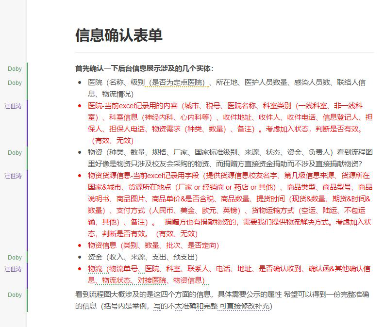 (图为高硕在筹建抗疫物资信息统计管理平台时根据数据库的概念列出的实体)